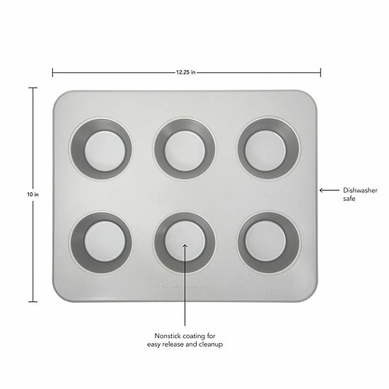 The KitchenAid 6-cup muffin pan is perfect for making muffins, cupcakes and egg cups.