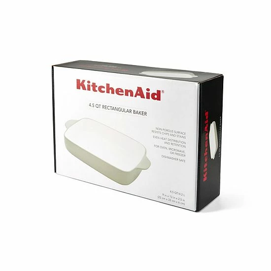 This KitchenAid Rectangular Baker is a kitchen essential for making casseroles for family meals. Made from highly durable stoneware, the vitrified construction offers chip and stain resistance. Expect professional results when using this nonporous bakeware, which provides even heat distribution and retention.